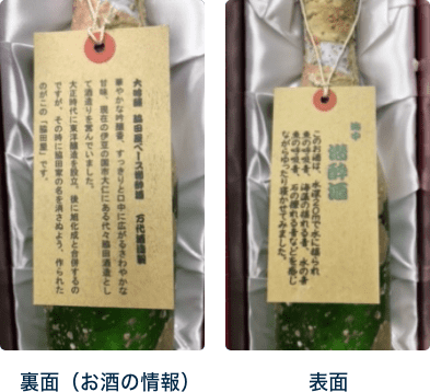 裏面にはご注文いただいたお酒の情報が入ります。