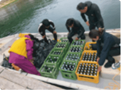 - お酒を引き上げてから、瓶に付着した海藻や貝の匂いを取り除くため2週間ほど陸保管を致します。