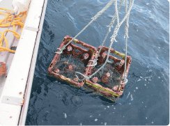 いよいよコンテナを水中貯蔵所に。